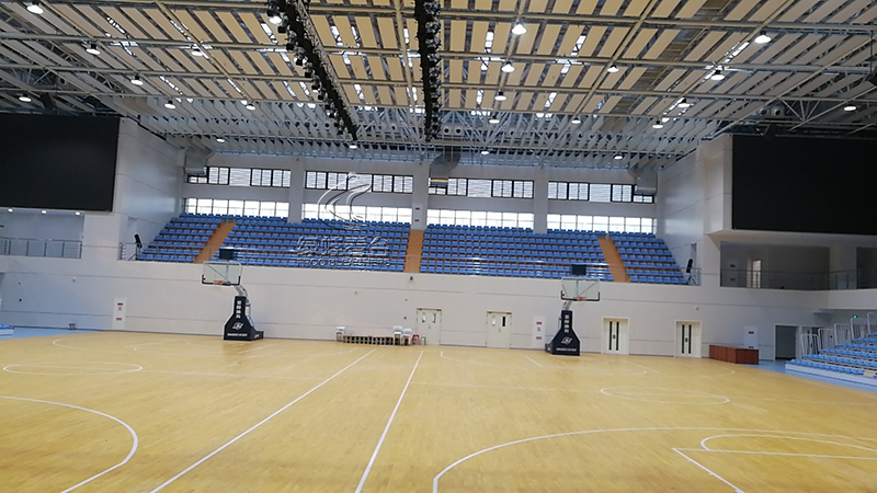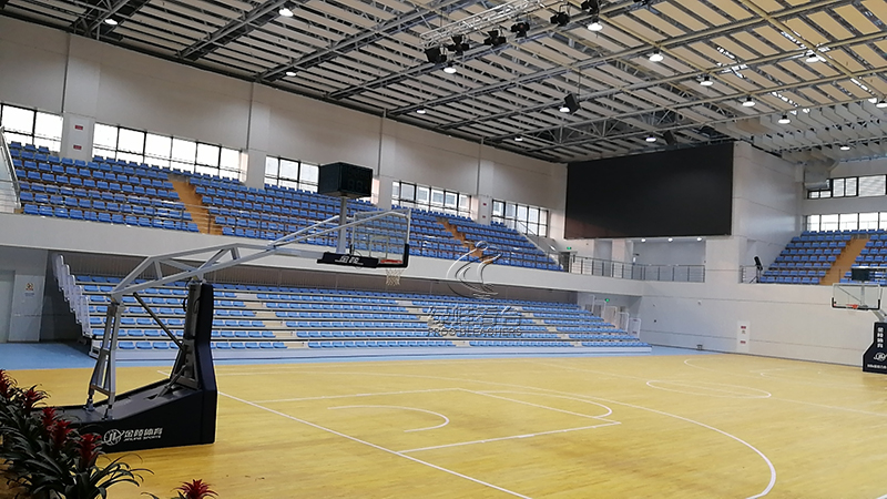 该校体育馆采用ng体育的伸缩看台,目前是学院中功能最全、设施最先进的篮球比赛场所。