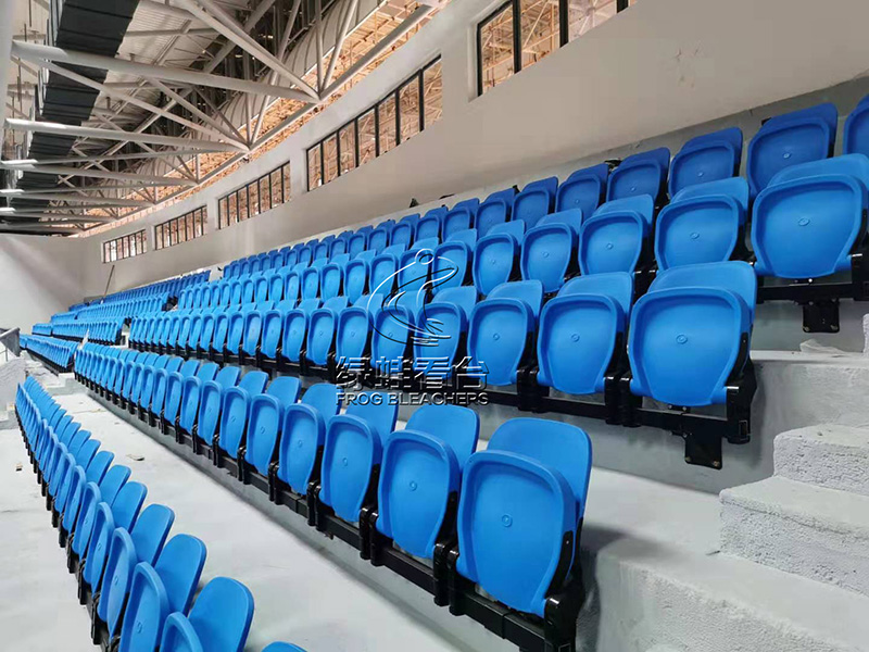 场馆中的看台设施由广州ng体育设施有限公司承办搭建安装,选择电动伸缩看台与固定看台组合布置,最大程度的利用场馆面积,能容纳更多的观众参与使用,高质量的看台设施也保障了观众的使用安全及舒适体验,醒目鲜艳的座椅配色使得场馆充满运动的活力。