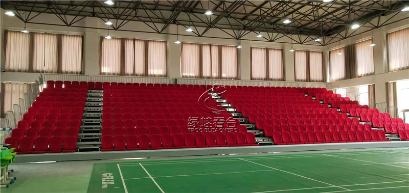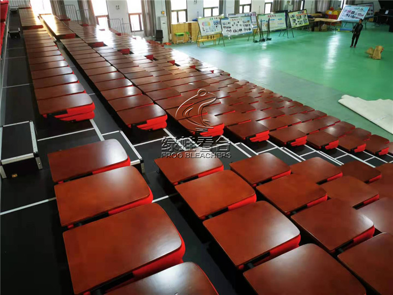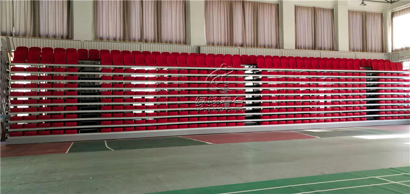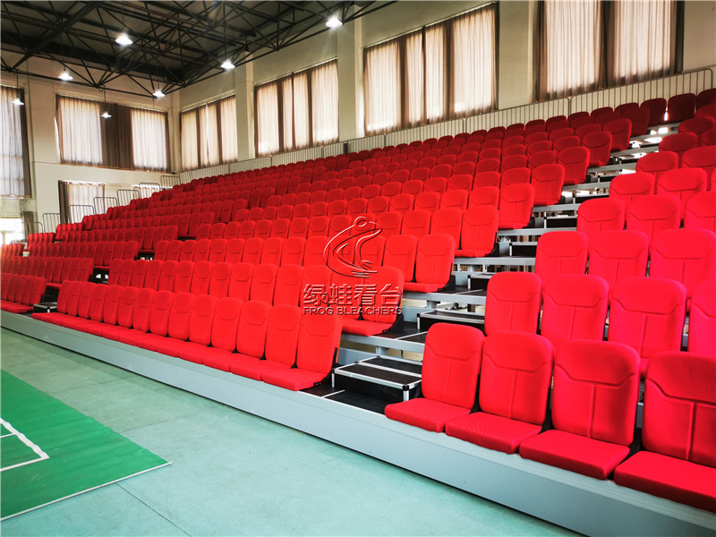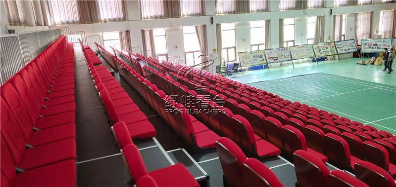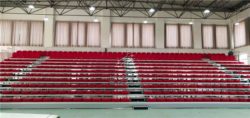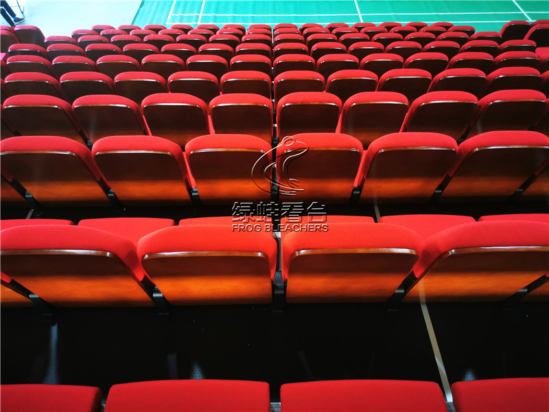 看台类型:前置式高靠背折叠翻板软包椅电动伸缩看台