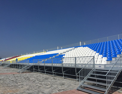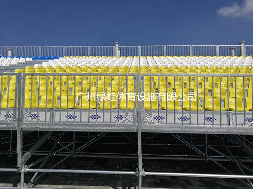 看台整体基础架采用可拆卸镀锌结构,普通观众席选用中靠背中空吹塑椅,贵宾区选用带扶手翻板吹塑椅,看台整体美观大气,成为该景区最大的亮点!