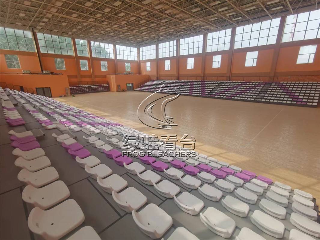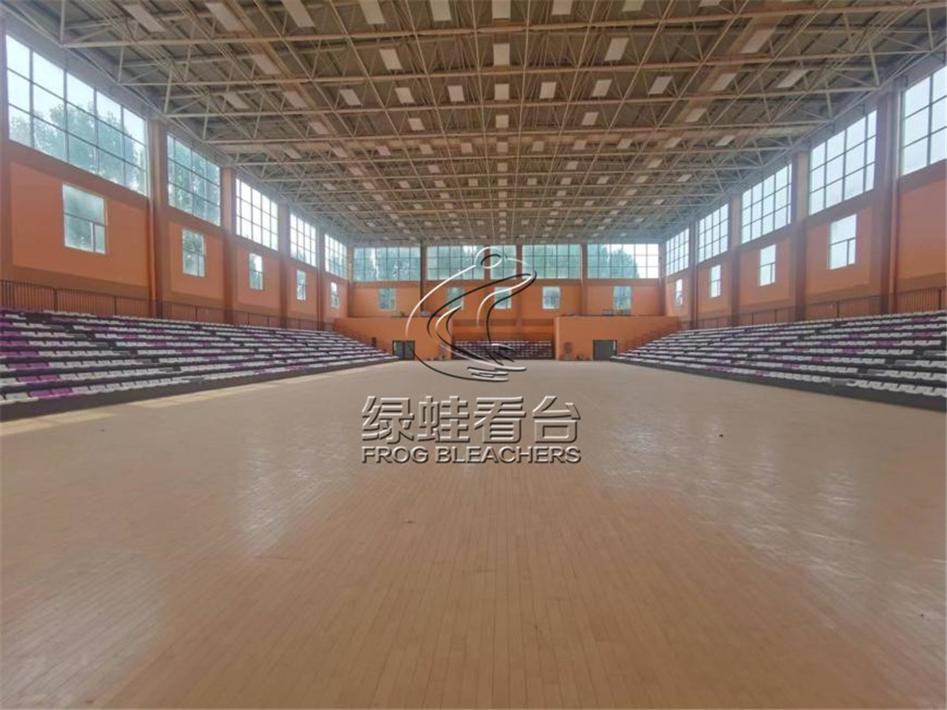 河北美术学院(北校区)体育馆采用了电动伸缩看台,配备了低靠背中空吹塑座椅。伸缩看台整体长度达37米长,几乎覆盖了体育馆预留伸缩看台位置;伸缩看台总座位数1380座,达到了小型体育馆3000人以下标准。