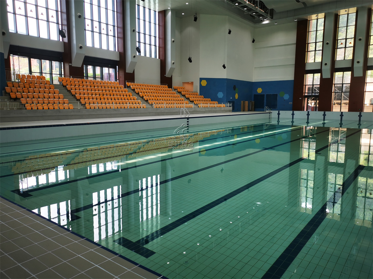 游泳馆只有固定坐席,与体育馆采用同款的可翻转的注塑座椅,整体为黄色,可容纳观众数量372人。