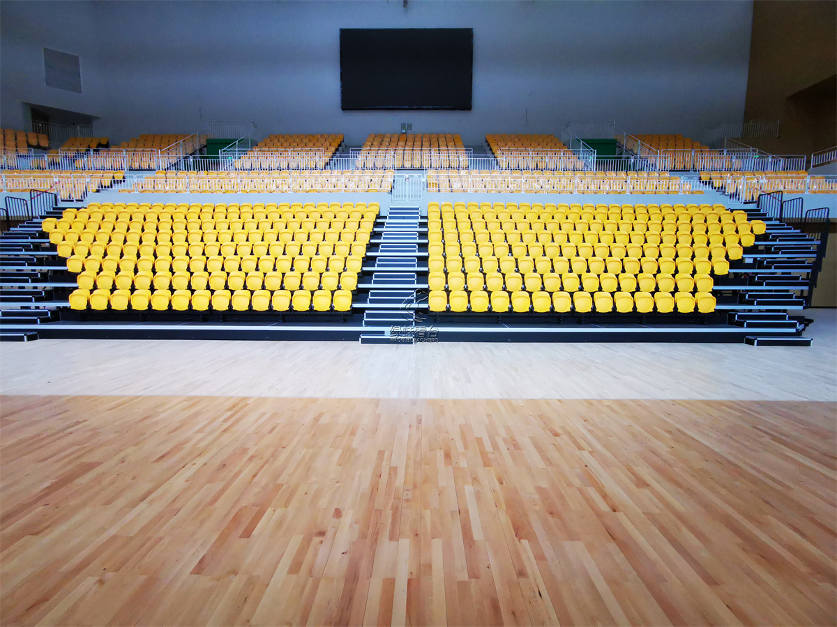 体育组团由A、B、C三个馆组成,其中A馆为体育馆,一楼为比赛场地,四周有伸缩活动看台2010座,二楼为固定坐席2116座和主席台28座,整体可容纳4000多人。座椅全部采用气辅式注塑翻板座椅,整体高档大气,且翻折后易于通行。伸缩活动看台采用后置式安装方式与体育馆整体气质比较符合。