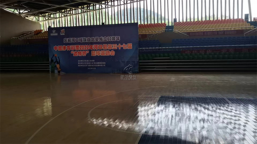 云南河口瑶族自治县体育馆(红河州河口口岸体育中心),包括有室内体育馆一座,建筑面积为8451.57m2(2480个座位);游泳馆一座,建筑面积为3286.87m2(198个座位);室外篮球场2块;售票中心74 m2;体育配套用房539.25 m2;车库7387.17 m2;室外体育场一个,建筑面积14100m2(其中包含:看台建筑面积2000 m2;标准足球场一块,含400米跑道;看台座位1860个)。结合总体规划道路、绿地面积及一定预留空地,总体用地面积168.04亩。