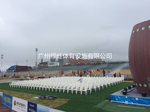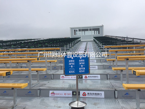 此看台为第二十七届青岛国际啤酒节开幕式用观景看台,坐落于青岛西海岸新区金沙滩啤酒城。看台可容纳5000人,看台整体采用镀锌可拆装式钢结构,座椅采用优质铝合金,除了座椅,每个位置配有桌子,方便观众一边欣赏节目,一边畅饮啤酒。