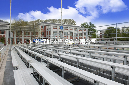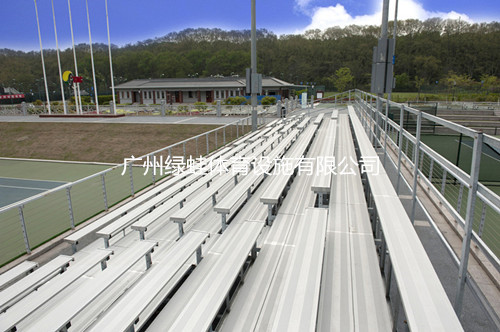 中国网球学院网球场采用铝制看台,铝制看台在国外被大量的应用,原因在于看台造价不高,耐用实用。看台基础架采用钢结构镀锌,座板踏板采用铝合金型材,长期置于室外不会因生锈对看台造成损伤。