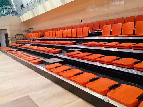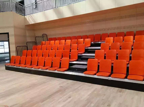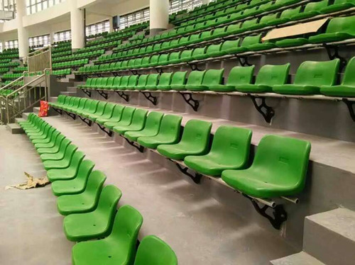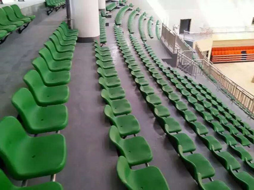 固定看台采用中靠背侧装支架座椅,伸缩看台采用高靠背翻板折叠椅,颜色采用绿橙搭配,整体美观大气。
