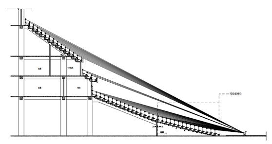 2)视线:由观众眼睛至场地设计视点的连线。看台有可变性、观众视线 无遮挡、观众视觉质量好,优良视线座席应占90%以上。