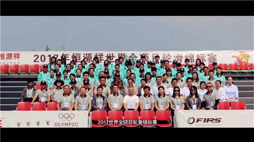 2017年世界全项目轮滑锦标赛于9月10日圆满落幕,组织方在绿蛙看台上留影纪念。