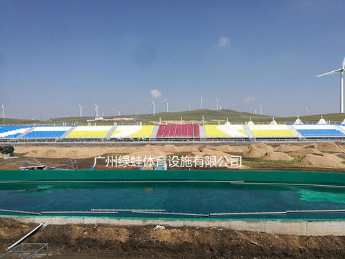 由创智慧集团公司打造的国际马术演艺小镇坐落于辉腾锡勒草原草垛山旁,集旅游休闲演艺于一体。该项目于7月份破土动工,绿蛙看台首先完成安装工作。