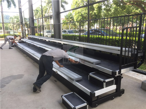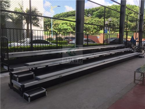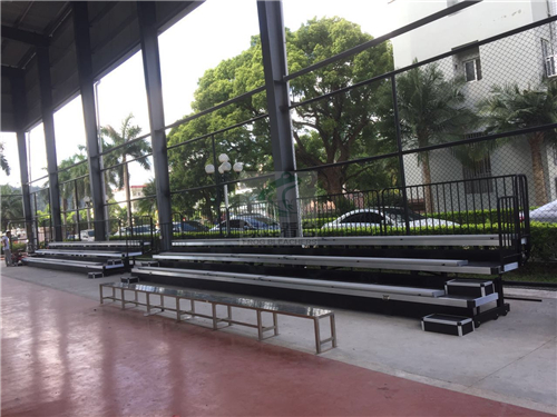 绿蛙简易伸缩看台入住深圳坪山社区,与周围建筑结构、景色浑然合一,量身定做,简洁,大方。