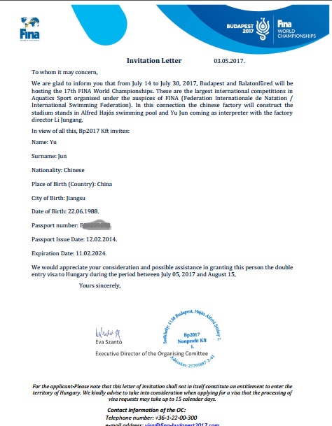 国际游泳联合会的邀请函