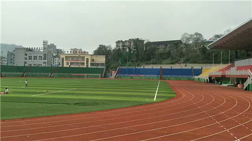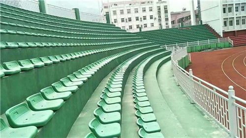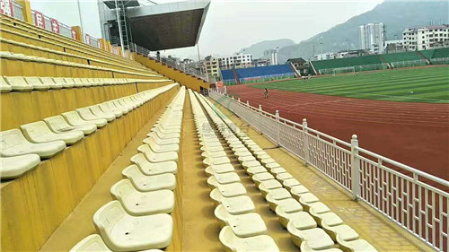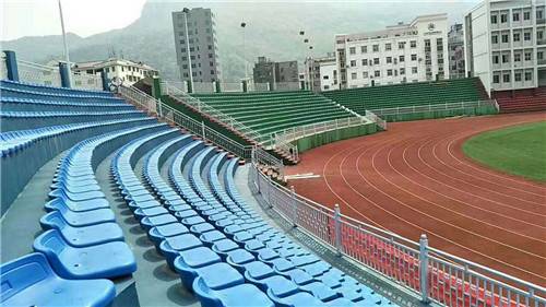 贵州石阡县体育中心看台座椅已安装一年有余,绿蛙同事发现座椅完好如初,气势依然恢宏!
