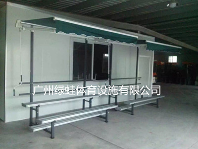 此看台采用钢为支撑架,铝材为双踏板,可以适应高强度的踩踏。前两排座椅选用无靠背吹塑条凳,后一排采用中靠背吹塑椅,满足了坐感的舒适要求。看台侧向装有万向轮,翻起看台可以移动。使用和储存都很便捷。