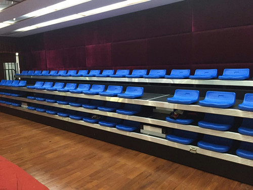 广州越秀区老干部活动中心内部需要经常举办活动,在没有看台的情况下,观众观看不便,经领导多方研究决定采用绿蛙看台伸缩看台。