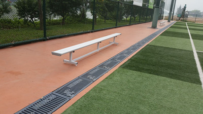 图为伊之密体育公园采购的绿蛙单层铝制看台,坚实耐用,行家所选!