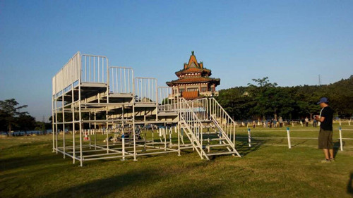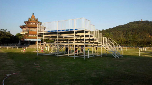 顺德顺峰山公园内,绿蛙看台参与中法文化节活动,作为龙形球场的场边看台,为观众提供观赏的平台。