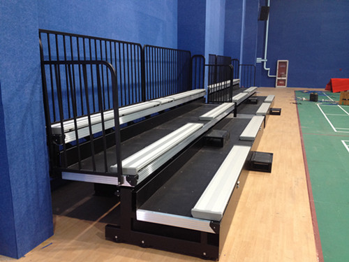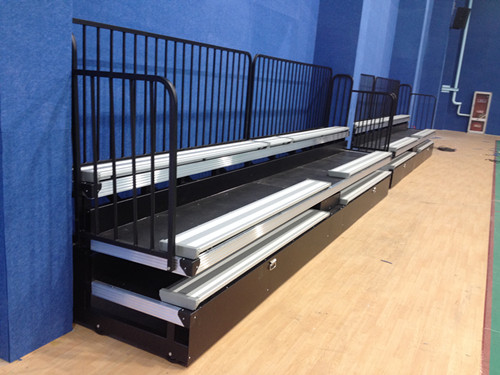 国电常州发电有限公司位于江苏省常州市新北区春江镇,公司内部建有员工活动场所。羽毛球场边需要配置伸缩看台。国电公司最终选择绿蛙公司铝合金座板手动伸缩看台。看台目前安装完毕,黑色金属风格,与羽毛球场地相得益彰,美观大方,业主颇为满意!
