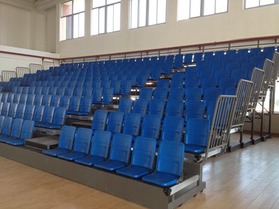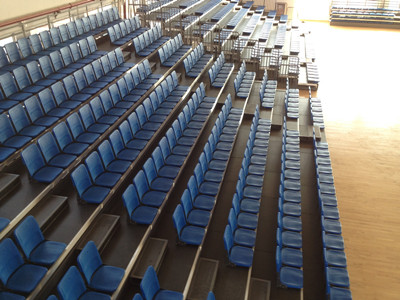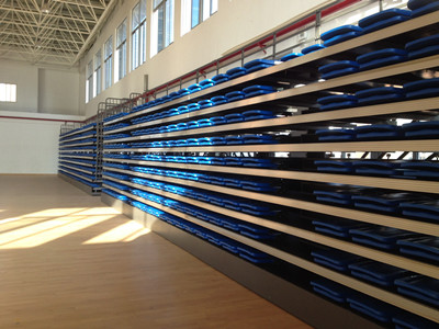 学校新建体育馆,由绿蛙公司提供伸缩看台,截止昨日看台已全部安装完毕,已具规模!