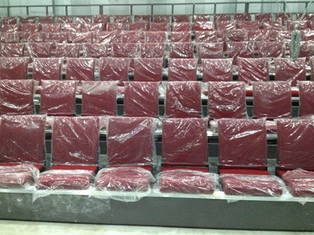 湖北武穴市电视演播中心电动伸缩软包椅看台全部完工