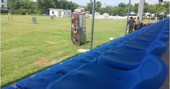 训练基地一侧设有看台,由绿蛙公司负责生产安装,为警犬训练及检阅时内部观众观看用