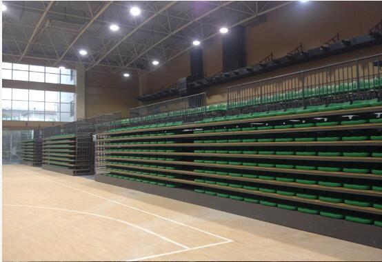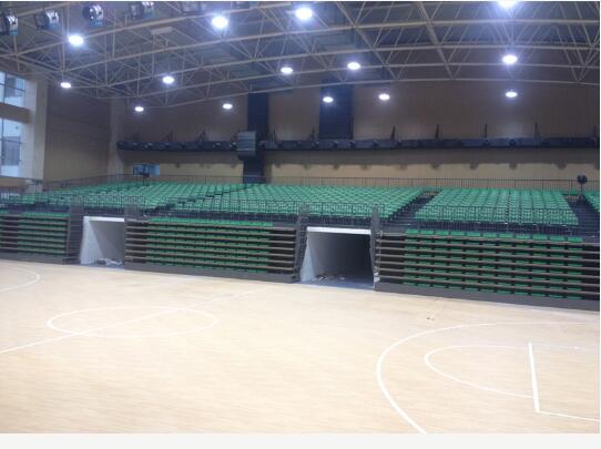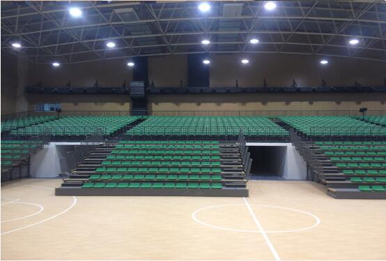 郴州柿竹园矿山体育馆看台为近来要求比较特殊的项目,本次项目分为固定看台和伸缩看台。固定看台舍弃了水泥台阶的做法,直接采用钢结构搭建,前段再接伸缩看台。绿蛙看台在项目前期与业主方进行了大量的全方位的沟通,最后设计出了该看台方案。经过几个月的施工与安装,最终呈现在我们面前的看台非常美观,非常有气势。