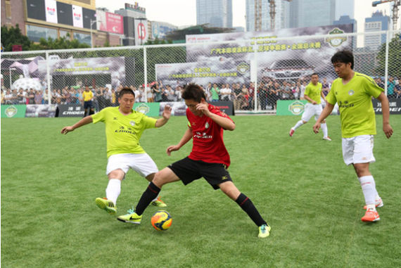 绿蛙看台助威广汽本田凌派杯五人足球争霸