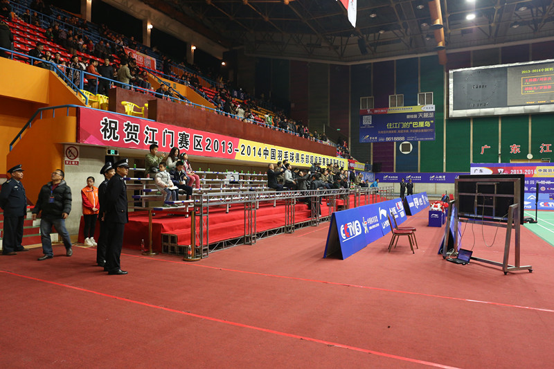 绿蛙看台为江门赛区体育馆提供铝合金简易看台,见证羽毛球联赛在国内的发展。