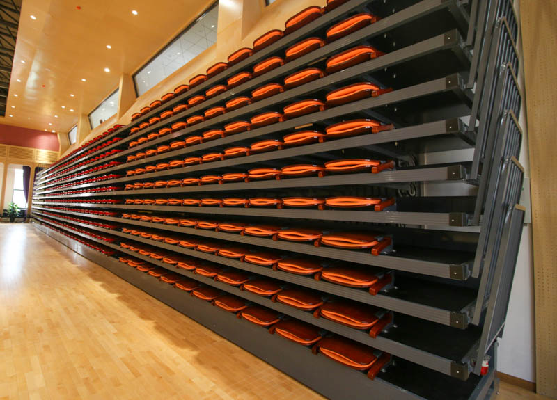 体育场馆看台伸缩座椅的好处就是可以根据不同的用途和功能进行调节,很方便快捷。座椅还配置有滑轮和刹车装置,这样既可以活动又可以固定,能调节不同的高度以满足不同客户对看台的需要。