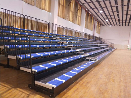 这些座位色彩鲜艳,不仅给学校体育馆增添了动感的气氛。且多年不易脱色,室内外环境均可使用。高级底部结构设计,在有效增加负载、降低系统自重的情况下,科学地解决了移动平台过大、运行多年容易发生系统变形等问题。