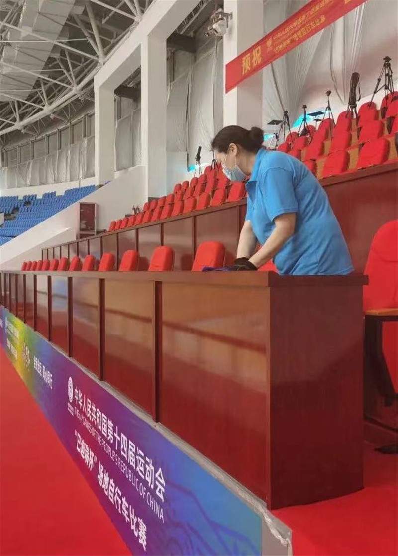 匠心显真情,绿蛙看台不分昼夜辛苦劳动,为场馆、观众提供良好的环境,用实际行动诠释匠人精神。