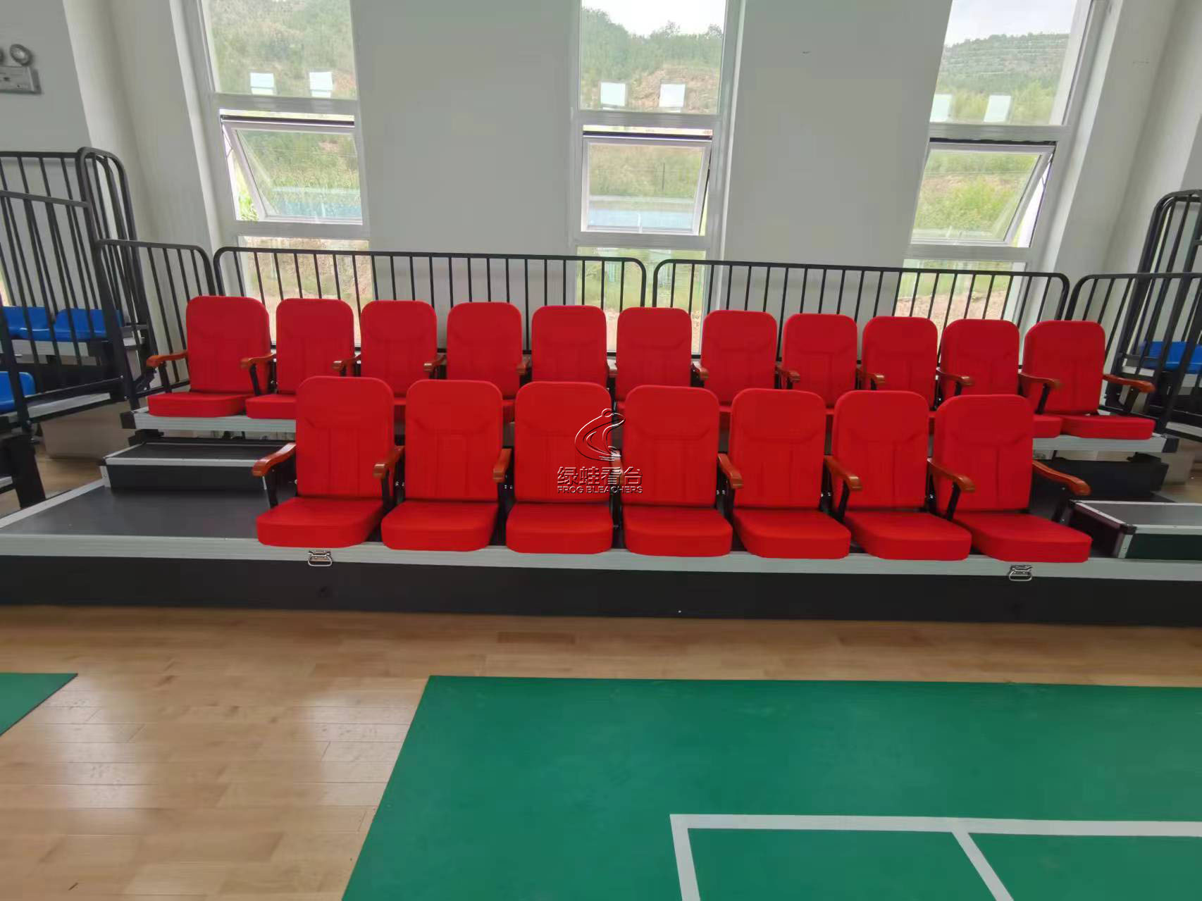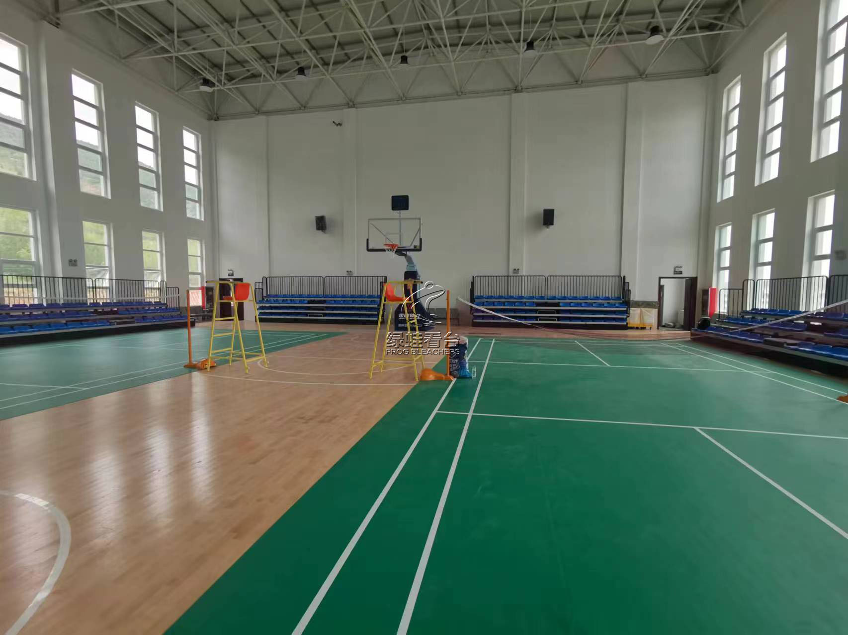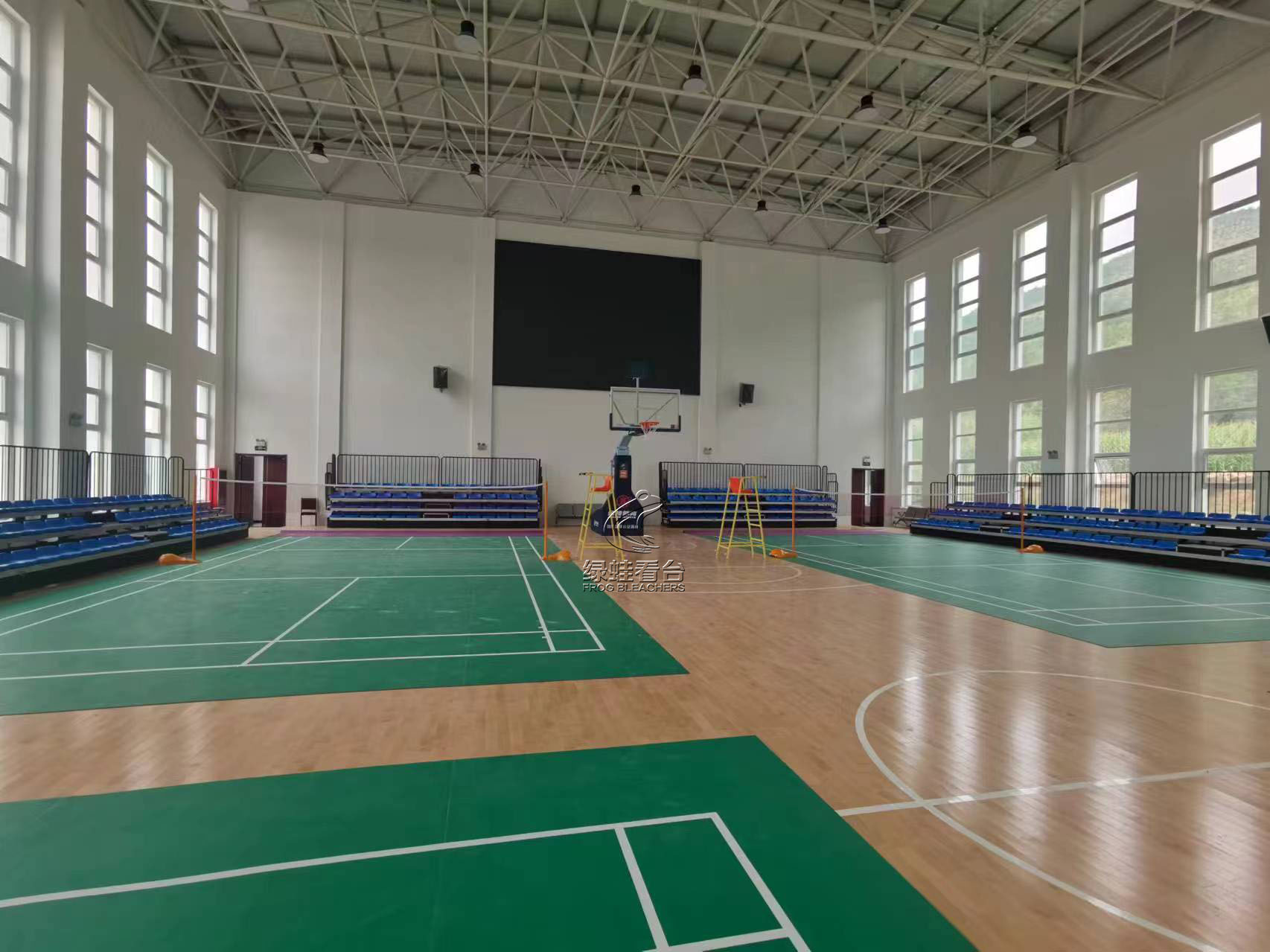 绿蛙看台完成甘肃通渭县体育馆手动伸缩看台项目