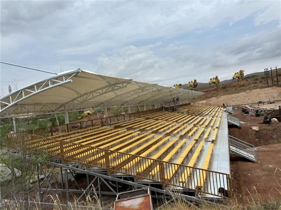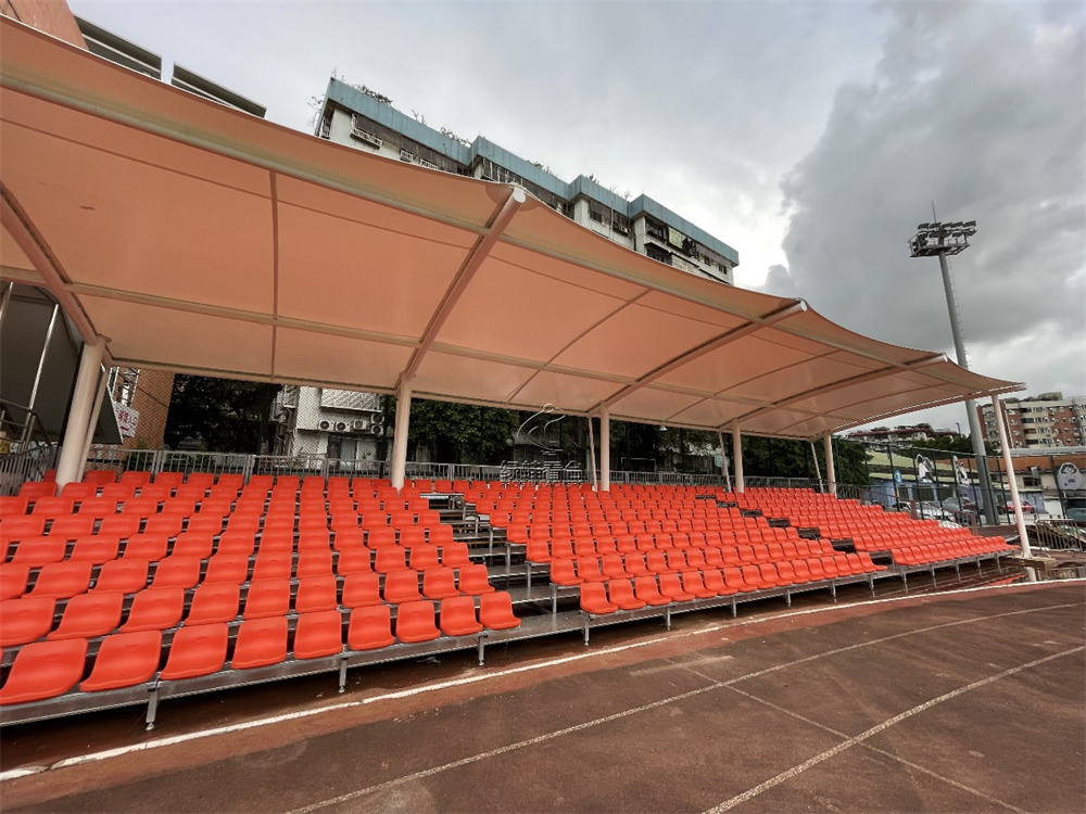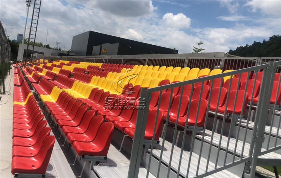 金属材质在潮湿环境下可能存在滑倒风险。因此,金属看台座椅的防滑设计至关重要。座椅表面可采用防滑纹理处理,增加摩擦力,防止观众在站立或移动时滑倒。此外,座椅的脚部设计也需考虑地面的摩擦系数,确保座椅在使用过程中不会发生位移或倾倒。