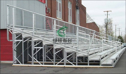 绿蛙豪华型铝制看台由标准型升级而来,配备双条铝合金踏板及人行道。豪华型看台标配尺寸为55mm*240mm的带氧化膜铝合金座板,尺寸为55mm*240mm的铝制脚踏板。豪华型铝制看台一般指5层-13层看台,标配护栏。
