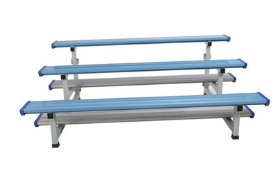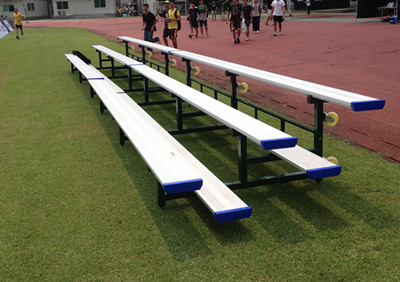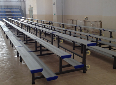 绿蛙可移动铝制看台,主要由钢制(铝制)支架、铝合金座板、踏板和脚轮构成,具有可翻转,移动方便,容易存 放等特点,方便客户临时增加座椅。
