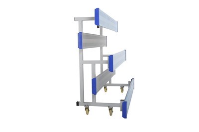 这款看台最大的特点是侧面安装了脚轮,翻转后,可利用脚轮随意移动。脚轮上配置了刹车装置,可在存放时控制其滚动。所有的可移动式铝制看台支脚都配有橡胶垫以保护地板。