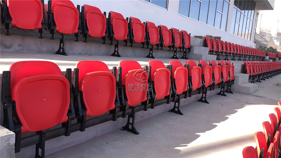 座椅采用立装方式的座椅,座椅支架选用优质钢材,喷涂工艺。压铸铝制座椅连接件采用静电喷塑处理。支架采用M10×80的击芯膨胀螺栓与看台水泥壁面相连,每个膨胀螺栓可抗力100kg以上。