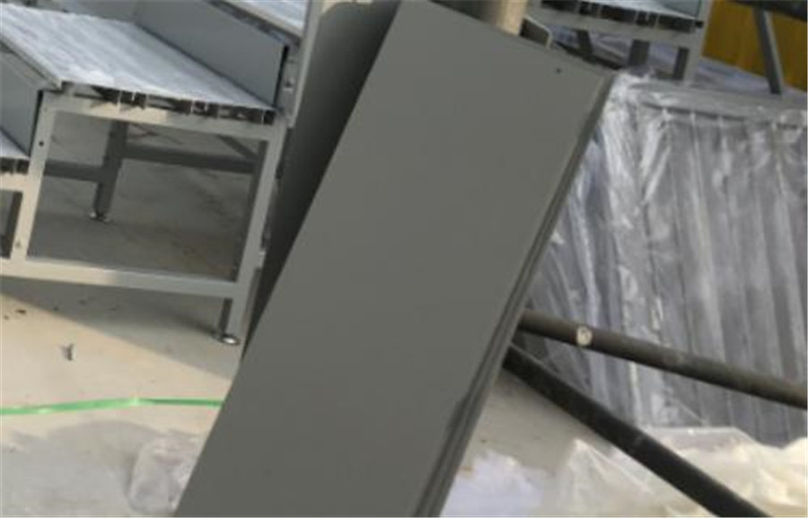 看台层阶之间采用钢板(1.2mm)封闭,钢板静电喷涂处理,整个看台不留空隙,增加安全性。