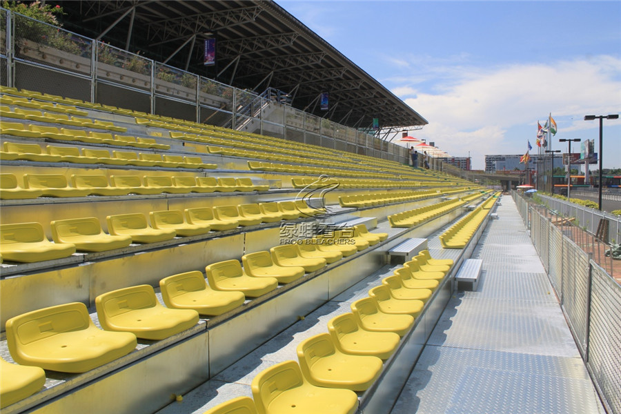 1、看台采用方便拆卸的结构。整体结构需采用标准件、模块化设计,看台的各种部件,如支架,踏板,侧板,护栏,座椅等,皆可随意搭配组装,可根据场地及观众席位需要进行各种层高、位数的拼装组合。