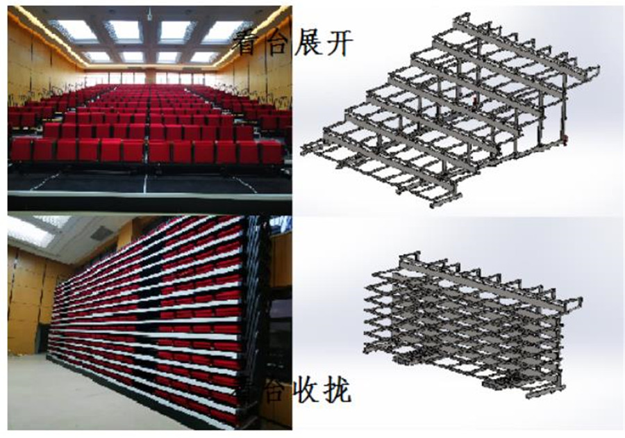 伸缩看台也称为活动看台,活动看台的称呼是相对于固定看台而来,伸缩看台拉伸成台阶形时,看台上的座椅供观众舒适地欣赏节目,收缩成匣子状(似抽屉)时则占用很少的空间,让出场地以安排他用。伸缩看台可充分利用室内的有限面积,满足不同功能情况下的多座位要求。伸缩看台广泛应用于体育馆、会议室、示教室、演播厅、多功能厅等。