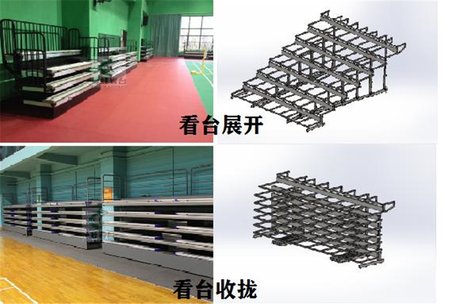 伸缩看台也称为活动看台,活动看台的称呼是相对于固定看台而来,伸缩看台拉伸成台阶形时,看台上的座椅供观众舒适地欣赏节目,收缩成匣子状(似抽屉)时则占用很少的空间,让出场地以安排他用。伸缩看台可充分利用室内的有限面积,满足不同功能情况下的多座位要求。伸缩看台广泛应用于体育馆、会议室、示教室、演播厅、多功能厅等。