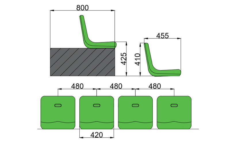 座椅尺寸:宽:425mm 高:410mm 深:455mm